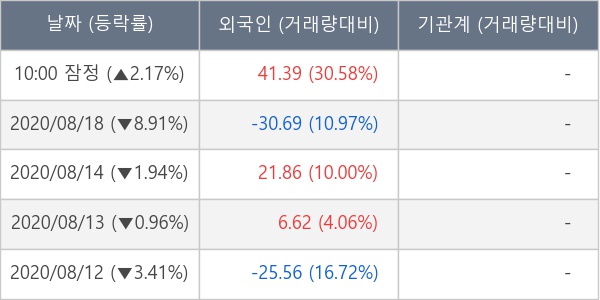 [표] 외국인ㆍ기관 순매매량 (단위 만주)