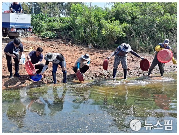 이날 방류된 수산종자는 전염병검사를 통과한 우수 종자들로 지난달 말 1차 방류에 이어 2차 방류이며 관계공무원과 방류지역 내수면어업계장 및 마을이장 등이 참석해 수산자원 회복과 증강을 위한 불법조업 감시체계 확립도 협의했다.