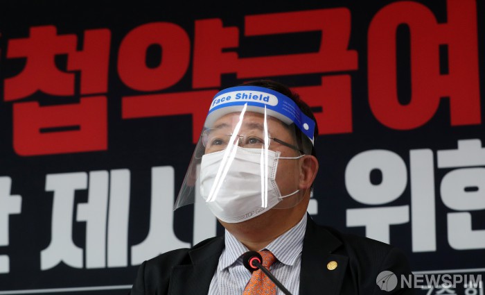 [서울=뉴스핌] 정일구 기자 = 첩약과학과 촉구 범의약회 비상대책위원회 관계자들이 17일 오전 서울 용산구 대한의사협회 임시회관에서 첩약급여 논란 대안 제시를 위한 기자회견을 하고 있다. 2020.09.17 mironj19@newspim.com