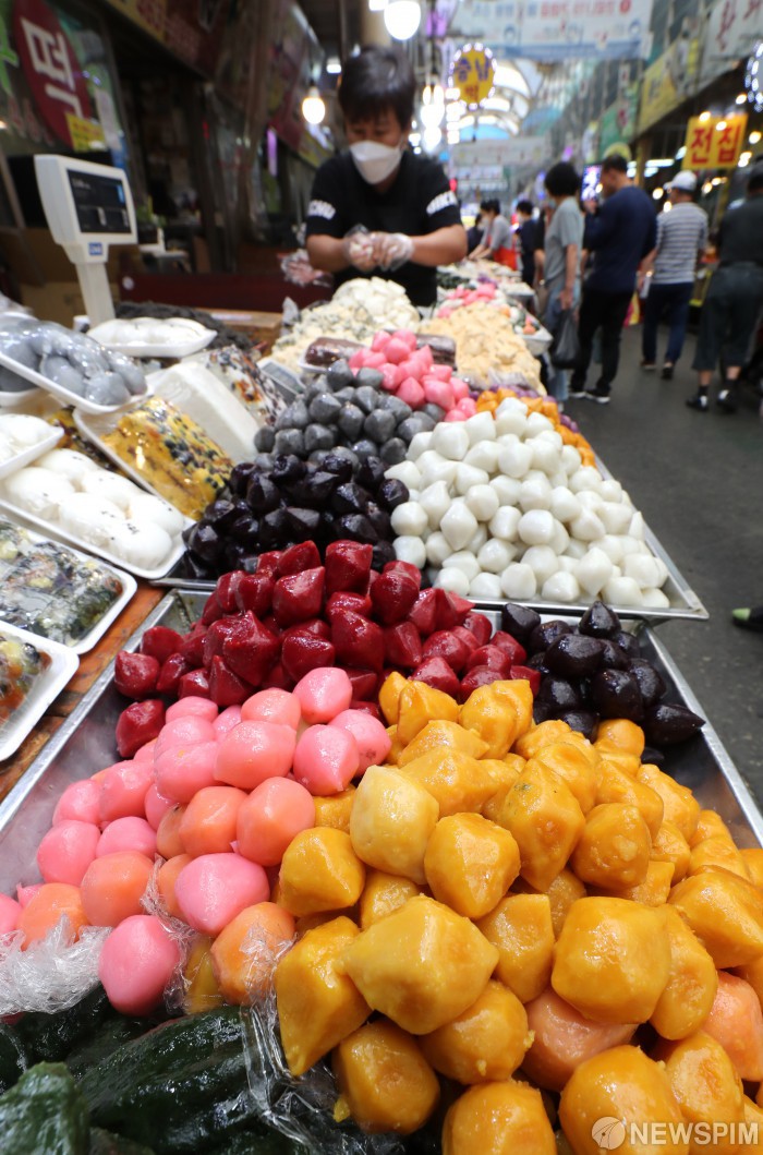 [인천=뉴스핌] 김학선 기자 = 추석을 10여 일 앞둔 20일 인천시 남동구 모래내시장의 한 떡집에서 장사 준비가 한창이다. 2020.09.20 yooksa@newspim.com