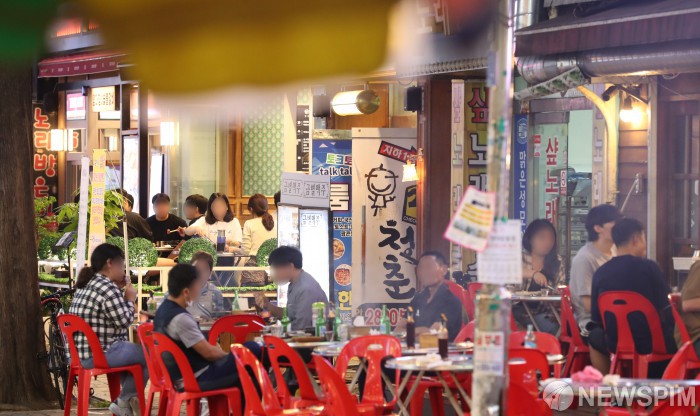 [부천=뉴스핌] 김학선 기자 = 20일 코로나19 확산 차단을 위해 비수도권에서 시행중인 '사회적 거리두기 2단계' 조치가 오는 27일까지 연장됐다. 비수도권의 2단계 조치는 20일 종료될 예정이었으나 수도권과 마찬가지로 1주일 더 유지하기로 했다. 이에 따라 실내 50인·실외 100인 이상의 집합금지 조치와 고위험시설 집합금지 조치 등 기존의 2단계 방역 조치가 계속 적용된다. 이날 밤 부천의 한 먹자골목에서 식당들이 영업을 하고 있다. 2020.09.20 yooksa@newspim.com