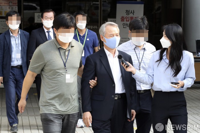 [서울=뉴스핌] 백인혁 기자 = 광복절 불법집회를 공모한 혐의를 받는 김수열 일파만파 대표(앞쪽)와 김경재 전 한국자유총연맹 대표가 28일 오후 서울 서초구 서울중앙지방법원에서 열린 구속 전 피의자 심문(영장실질심사)을 마친 뒤 호송차로 이동하고 있다. 2020.09.28 dlsgur9757@newspim.com