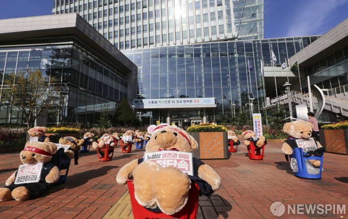 곰인형으로 집회 연 서부지역노점상연합회