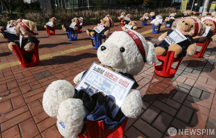 [서울=뉴스핌] 이한결 기자 = 5일 오후 서울 마포구청 앞에서 서부지역노점상연합회가 노점단속을 규탄하는 아바타 집회를 열고 있다. 노점상연합회는 코로나19 상황 속에서 마포구청의 기습단속이 상인들의 생존권을 위협한다며 규탄했다. 2020.10.05 alwaysame@newspim.com