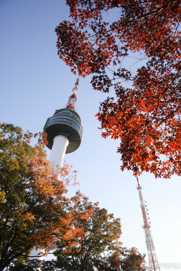 [서울=뉴스핌] 최상수 기자 = 17일 오후 서울 중구 남산타워에서 단풍이 물들어 가는 가운데 시민들이 가을 산책을 즐기고 있다. 정부는 단풍절정기인 이달 17일부터 다음달 15일까지 가을철 코로나19 방역 집중관리 기간에 들어간다고 밝혔다. 2020.10.17 kilroy023@newspim.com