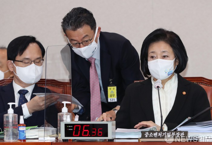 [서울=뉴스핌] 이형석 기자 = 박영선 중소벤처기업부 장관이 26일 서울 여의도 국회에서 열린 산업통상자원중소벤처기업위원회의 중소벤처기업부·특허청 등에 대한 종합감사에서 답변하고 있다. 2020.10.26 leehs@newspim.com