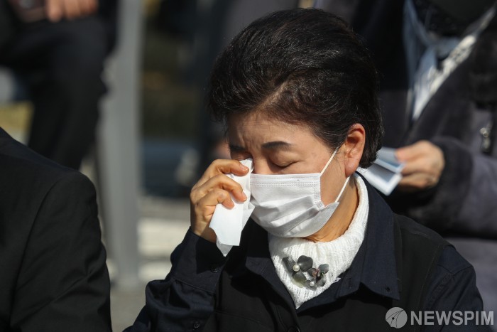 [서울=뉴스핌] 이형석 기자 = 박근령 전 육영재단 이사장이 26일 오전 서울 동작구 국립서울현충원에서 열린 고(故) 박정희 전 대통령 서거 41주기 추도식에서 눈물을 닦고 있다. 2020.10.26 leehs@newspim.com