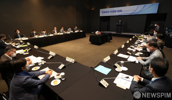 [서울=뉴스핌] 정일구 기자 = 조명래 환경부 장관이 27일 오후 서울 영등포구 글래드호텔에서 열린 환경권 40주년 기념 포럼에서 축사를 하고 있다. 2020.10.27 mironj19@newspim.com