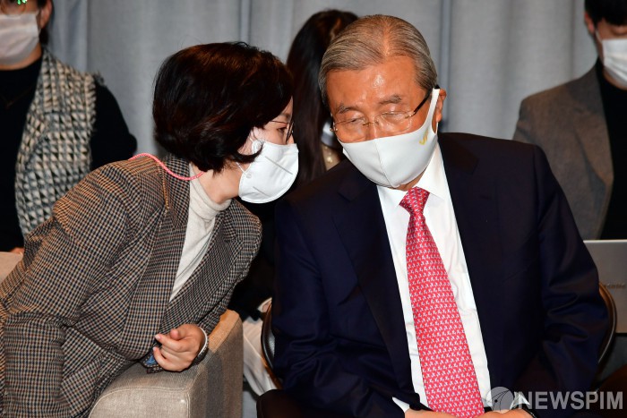 [과천=뉴스핌] 국회사진취재단 = 김종인 국민의힘 비상대책위원장과 김현아 전 의원이 16일 오후 경기도 과천 지식정보센터 모델하우스를 방문해 아파트 청약시장 부동산 정책 현장 점검을 하며 대화를 하고 있다. 2020.11.16 photo@newspim.com