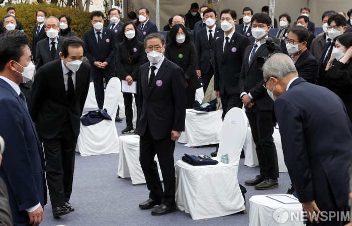[서울=뉴스핌] 정일구 기자 = 정세균 국무총리가 17일 오전 서울 서대문구 서대문독립공원 순국선열추념탑에서 열린 제81회 순국선열의 날 기념식에서 김종인 국민의힘 비상대책위원장과 인사를 하고 있다. 2020.11.17 mironj19@newspim.com