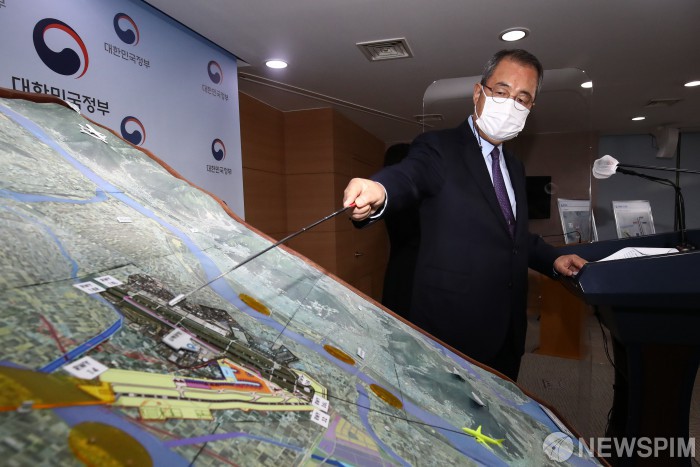 [서울=뉴스핌] 백인혁 기자 = 김수삼 김해신공항 검증위원장이 17일 오후 서울 종로구 정부서울청사 브리핑룸에서 김해신공항 검증위원회 검증 결과를 발표하고 있다. 2020.11.17 dlsgur9757@newspim.com