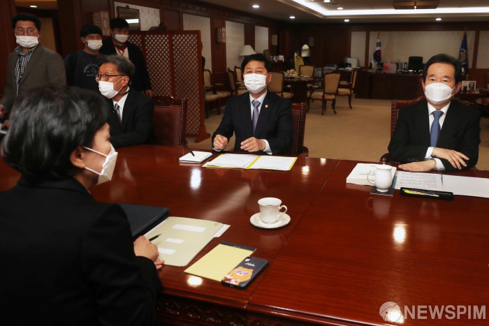 [서울=뉴스핌] 백인혁 기자 = 정세균 국무총리가 17일 오후 서울 종로구 정부서울청사에서 열린 김해신공항 검증 후속 관계장관회의에서 모두발언을 하고 있다. 2020.11.17 dlsgur9757@newspim.com