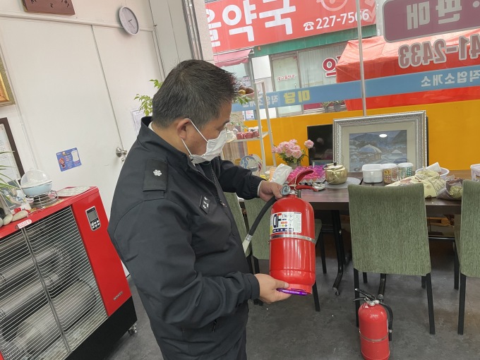 | 화재안전정보조사 중 소화기 점검 [사진=광주 동부소방서] 2020.11.23 kh10890@newspim.com |