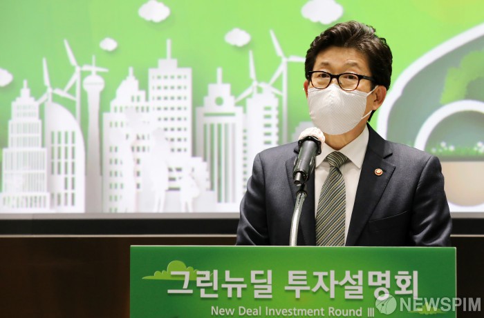 [서울=뉴스핌] 백인혁 기자 = 조명래 환경부 장관이 26일 오후 서울 영등포구 KDB산업은행에서 열린 그린뉴딜 투자설명회에서 개회사를 하고 있다. 이번 투자설명회는 그린 뉴딜 중에서도 친환경 미래차와 녹색 산업 분야에 관한 것으로, 전기·수소차 투자 활성화를 위한 정책 방향, 그린 중소·벤처기업 혁신 성장 지원 방안, 시중 유동성을 녹색 산업으로 유도하는 녹색 금융 활성화 방안 등에 관한 설명이 진행됐다. 2020.11.26 dlsgur9757@newspim.com