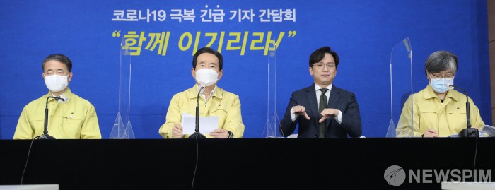 [서울=뉴스핌] 이형석 기자 = 정세균 국무총리가 29일 오후 서울 종로구 정부서울청사에서 열린 '코로나극복 긴급 기자 간담회'에 모두발언을 하고 있다. 수도권에 대해서 2단계초치를 유지하되 방역 조치를 강화하기로 했다. 2020.11.29 leehs@newspim.com