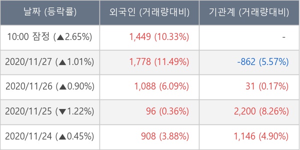 [표] 외국인ㆍ기관 순매매량 (단위 주)