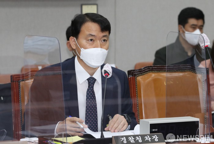 [서울=뉴스핌] 이형석 기자 = 송민헌 경찰청 차장이 2일 서울 여의도 국회에서 경찰법 개정안 등을 심의하기 위해 열린 행정안전위원회 법안심사제2소위원회에서 의원 질의를 듣고 있다. 2020.12.02 leehs@newspim.com