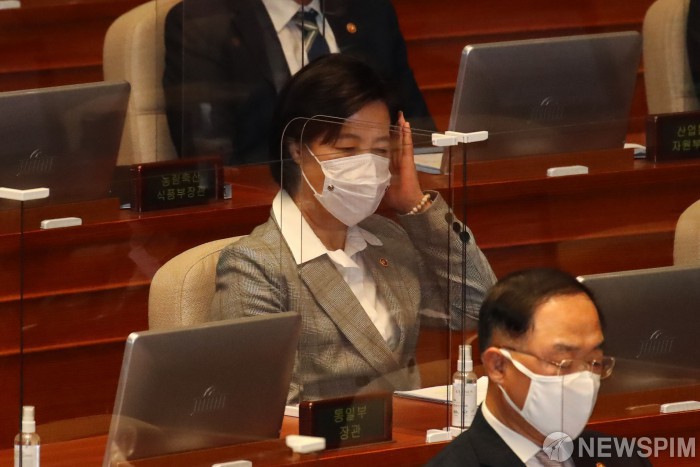 [서울=뉴스핌] 최상수 기자 = 추미애 법무부 장관이 2일 오후 국회에서 열린 제382회 국회 정기회에 참석해 있다. 2020.12.02 kilroy023@newspim.com