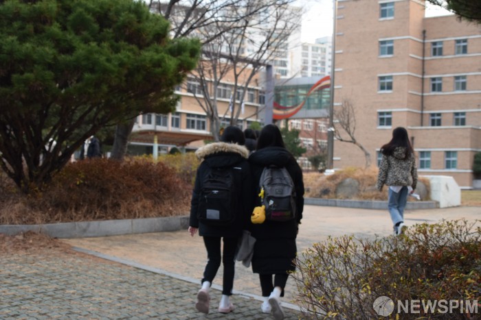 [광주=뉴스핌] 전경훈 기자 = 2021학년도 대학수학능력시험일인 3일 광주 서구 상일여고에서 수험생들이 고사장으로 이동하고 있다. 2020.12.03 kh10890@newspim.com