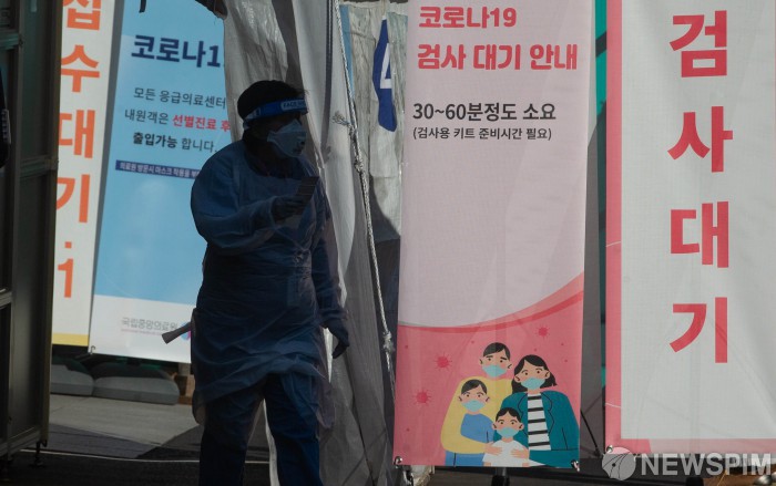 [서울=뉴스핌] 윤창빈 기자 = 3일 오전 0시 기준 국내 코로나19 확진자가 540명으로 이틀째 500명대를 이어가는 가운데 이날 서울 중구 국립중앙의료원 선별진료소 의료진이 분주하다. 2020.12.03 pangbin@newspim.com