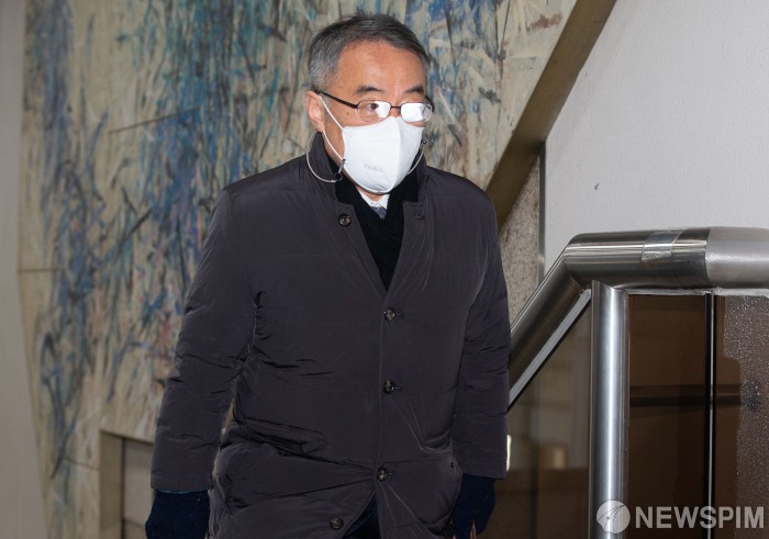[서울=뉴스핌] 윤창빈 기자 = 사법행정권 남용 의혹 사건으로 기소된 임종헌 전 법원행정처 차장이 15일 오전 서울 서초구 서울중앙지방법원에서 열린 86차 공판에 출석하고 있다. 2020.12.15 pangbin@newspim.com