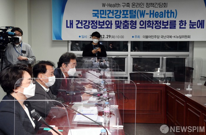 [서울=뉴스핌] 이형석 기자 = 29일 국회의원회관에서 열린 더불어민주당 국민건강 언텍트 간담회에서 참석자들이 화상간담회를 하고 있다. 2020.12.29 leehs@newspim.com