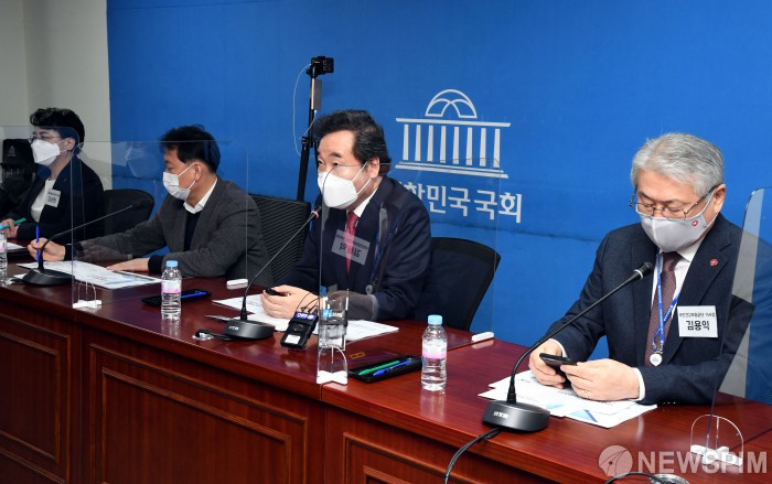 [서울=뉴스핌] 이형석 기자 = 29일 국회의원회관에서 열린 더불어민주당 국민건강 언텍트 간담회에서 이낙연 대표가 인사말을 하고 있다. 2020.12.29 leehs@newspim.com