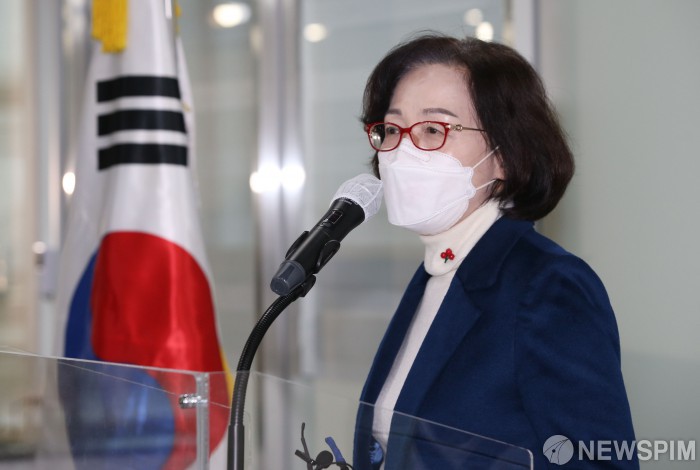 [서울=뉴스핌] 이형석 기자 = 서울시장 보궐선거 출마를 선언한 박춘희 전 송파구청장이 29일 오전 서울 여의도 국민의힘 중앙당사에서 '문재인 대통령 직무유기 고발 기자회견'을 하고 있다. 2020.12.29 leehs@newspim.com
