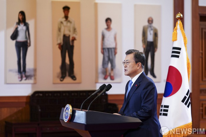 [서울=뉴스핌]문재인 대통령이 11일 오전 청와대에서 신년사를 하고 있다. [사진=청와대]2021.01.11.photo@newspim.com