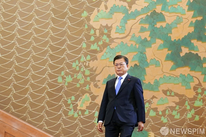 [서울=뉴스핌]문재인 대통령이 11일 오전 청와대에서 신년사를 위해 연단으로 향하고 있다. [사진=청와대]2021.01.11.photo@newspim.com