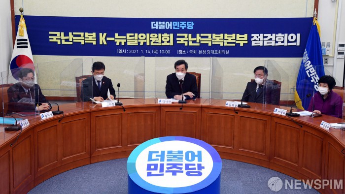 [서울=뉴스핌] 최상수 기자 = 14일 국회 더불어민주당 당대표실에서 열린 K-뉴딜위원회 국난극복 점검회의에서 이낙연 대표가 인사말을 하고 있다. 2021.01.14 kilroy023@newspim.com