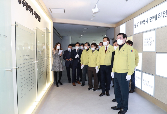 광주시는 14일 시청 1층에서 이용섭 시장, 김용집 광주시의회 의장, 전년도 시민대상 수상자, 구제길 광주아너소사이어티회장, 윤택림 광주시 시정자문위원회 사무총장 등 관계자가 참석한 가운데 '광주시 명예의 전당' 제막식을 개최했다고 밝혔다.