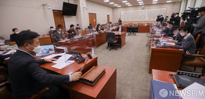 [서울=뉴스핌] 최상수 기자 = 20일 오후 서울 여의도 국회에서 열린 법제사법위원회 전체회의에서 윤호중 위원장이 김진욱 고위공직자범죄수사처장 후보자 인사청문 경과보고서 채택의 건을 의결하고 있다. 2021.01.20 kilroy023@newspim.com