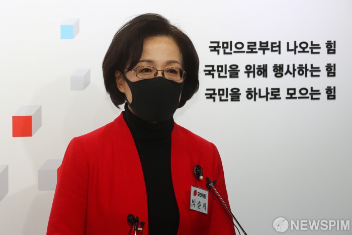 [서울=뉴스핌] 이형석 기자 = 박춘희 전 송파구청장이 24일 오후 서울 여의도 국민의힘 중앙당사에서 열린 서울시장 보궐선거 공천 신청자 면접을 마친 뒤 취재진의 질문에 답변하고 있다. 2021.01.24 leehs@newspim.com