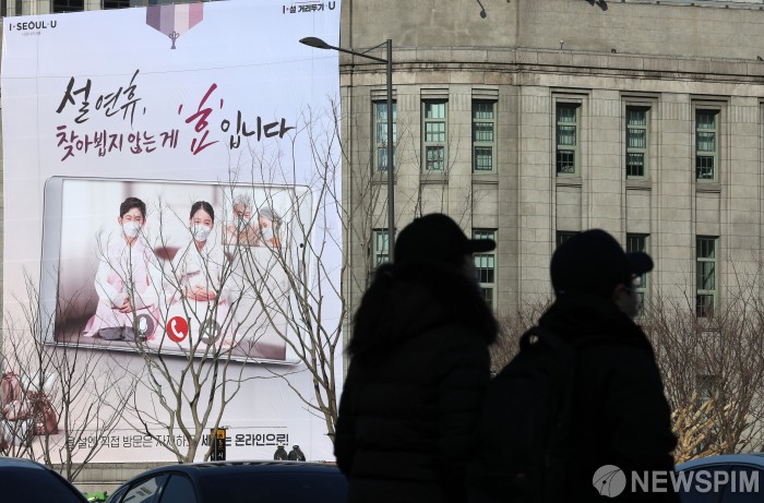 서울도서관 외벽에 붙은 설연휴 거리두기 포스터