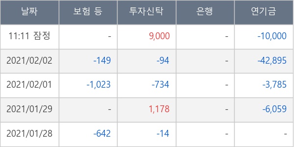※ 사모펀드 등 일부 기관의 순매매량은 표시되지 않음