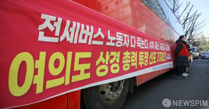 전세버스 노동자, 여의도 상경 총력 투쟁 선포 기자회견