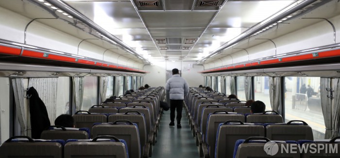 '창가 자리에만 앉은 귀성객들'