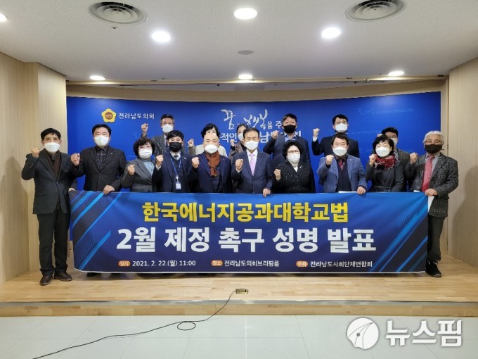 | [전남=뉴스핌] 조은정 기자 = 전남사회단체연합회가 22일 도의회 브리핑룸에서 기자회견을 하고 한국에너지공과대학교법의 조속한 제정을 촉구하는 성명을 발표했다. 2021.02.22 ej7648@newspim.com |