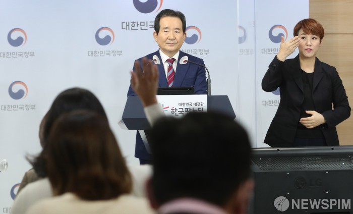[서울=뉴스핌] 김학선 기자 = 정세균 국무총리가 25일 서울 종로구 정부서울청사에서 가진 첫 개방형 정례브리핑에서 취재진의 질문을 받고 있다. 개방형 브리핑은 정부와 언론 간 소통 방식을 개선하기 위해 제안된 형식으로 총리실 출입기자뿐 아니라 모든 부처의 출입기자들을 대상으로 진행된다. 정부는 향후 이를 전 부처로 확대해 나간다는 방침이다. 2021.02.25 yooksa@newspim.com