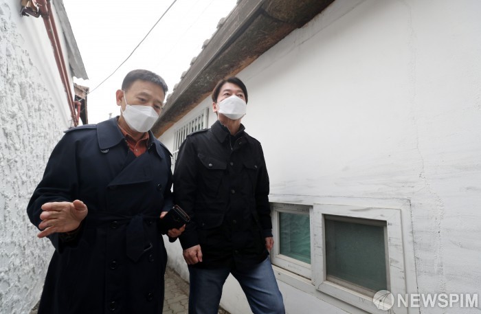 [서울=뉴스핌] 정일구 기자 = 4·7 서울시장 보궐선거에 나선 안철수 국민의당 대표가 28일 오후 서울 동작구 노량진1재정비촉진구역을 방문해 노후 주거 현장을 둘러보고 있다. 2021.02.28 mironj19@newspim.com