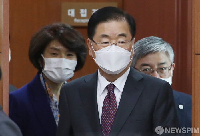 [서울=뉴스핌] 김학선 기자 = 정의용 외교부 장관과 한정애 환경부 장관이 10일 오후 서울 종로구 외교부청사에서 열린 '제2차 P4G 정상회의 제5차 준비위원회'에 참석하고 있다. 2021.03.10 yooksa@newspim.com