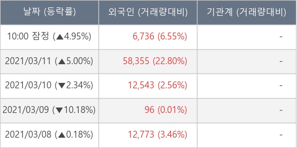 [표] 외국인ㆍ기관 순매매량 (단위 주)