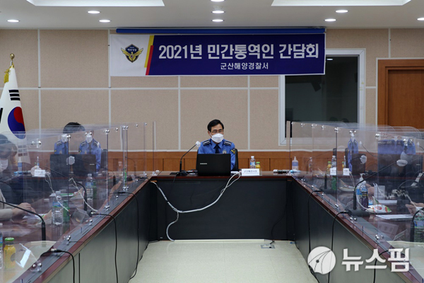 | 군산해경이 민간통역요원들과 수사통역 발전방향 논의하고 있다[사진=군산해양경찰서] 2021.03.19 obliviate12@newspim.com |