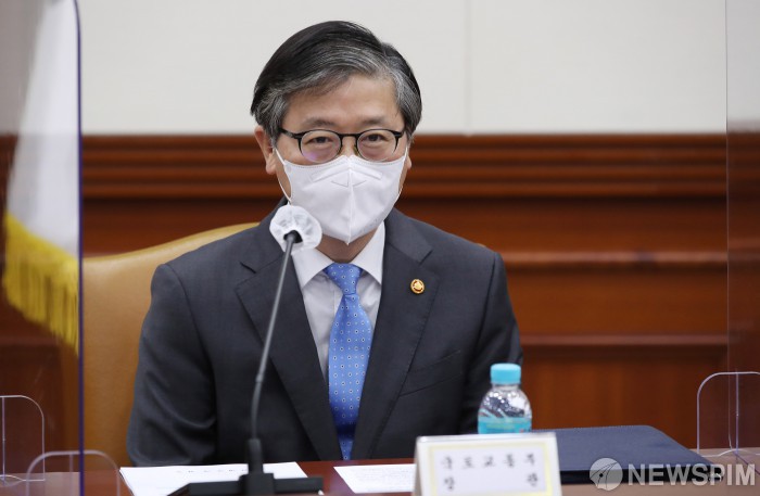 [서울=뉴스핌] 김학선 기자 = 변창흠 국토교통부 장관이 1일 오전 서울 종로구 정부서울청사에서 열린 혁신성장 BIG3 추진회의에 참석해 있다. 2021.04.01 yooksa@newspim.com