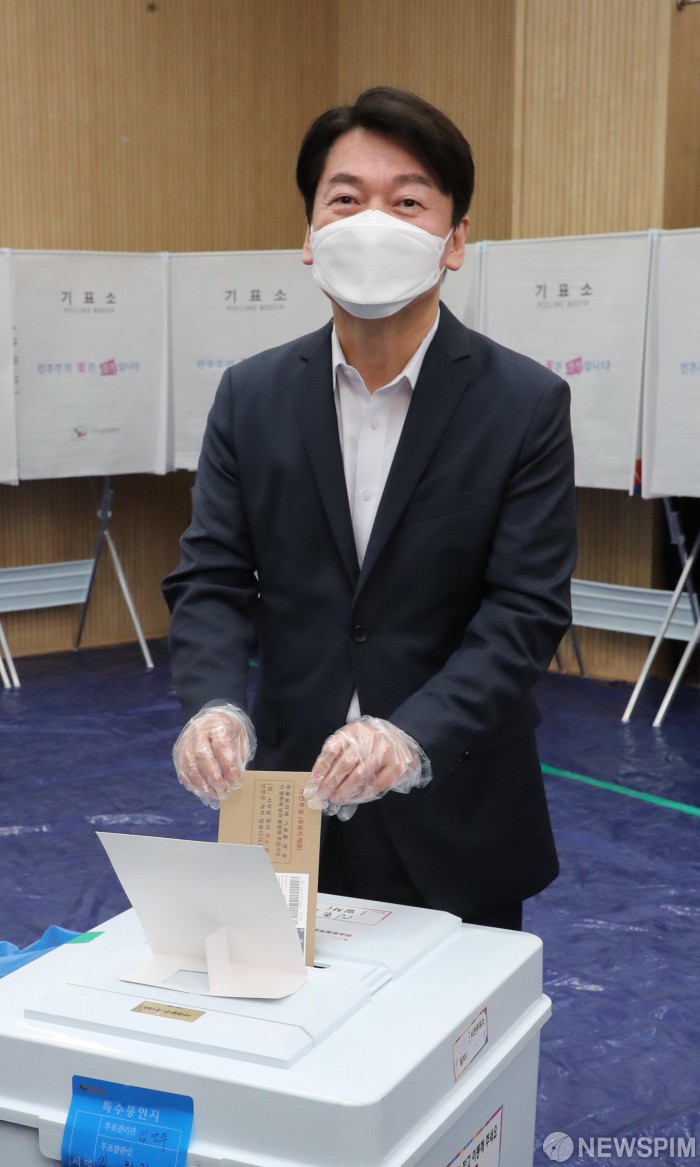 [서울=뉴스핌] 국회사진취재단 = 안철수 국민의당 대표가 2일 오전 서울 서대문구 연세로 신촌파랑고래 투표소에서 투표를 하고 있다. 2021.04.02 photo@newspim.com