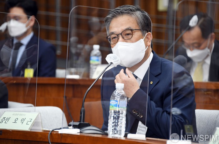 [서울=뉴스핌] 이형석 기자 = 오익근 대신증권 대표이사가 7일 오후 서울 여의도 국회에서 열린 김부겸 국무총리 후보자 인사청문회에서 의원질의에 답변하고 있다. 2021.05.07 leehs@newspim.com