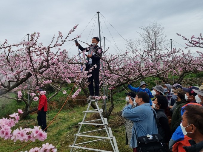 | 농업인대학 복숭아 적화 실습 모습 [사진=화순군] 2021.05.12 ej7648@newspim.com |
