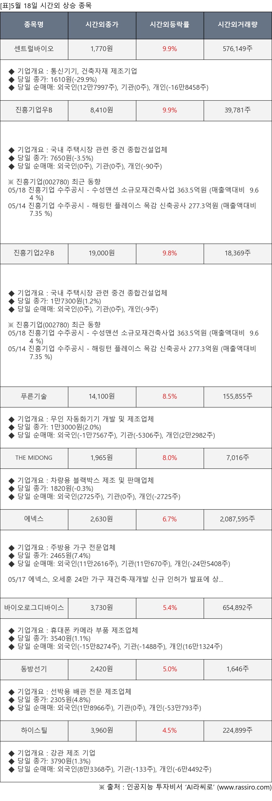 ※ 관련 종목: 센트럴바이오, 진흥기업우B, 진흥기업2우B, 푸른기술, THE MIDONG, 에넥스, 바이오로그디바이스, 동방선기, 하이스틸