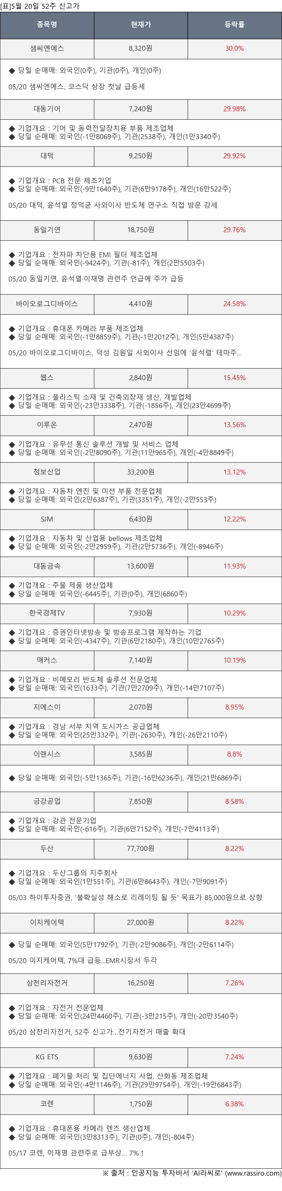 ※ 관련 종목: 샘씨엔에스, 대동기어, 대덕, 동일기연, 바이오로그디바이스, 웹스, 이루온, 청보산업, SJM, 대동금속, 한국경제TV, 매커스, 지에스이, 이랜시스, 금강공업, 두산, 이지케어텍, 삼천리자전거, KG ETS, 코렌